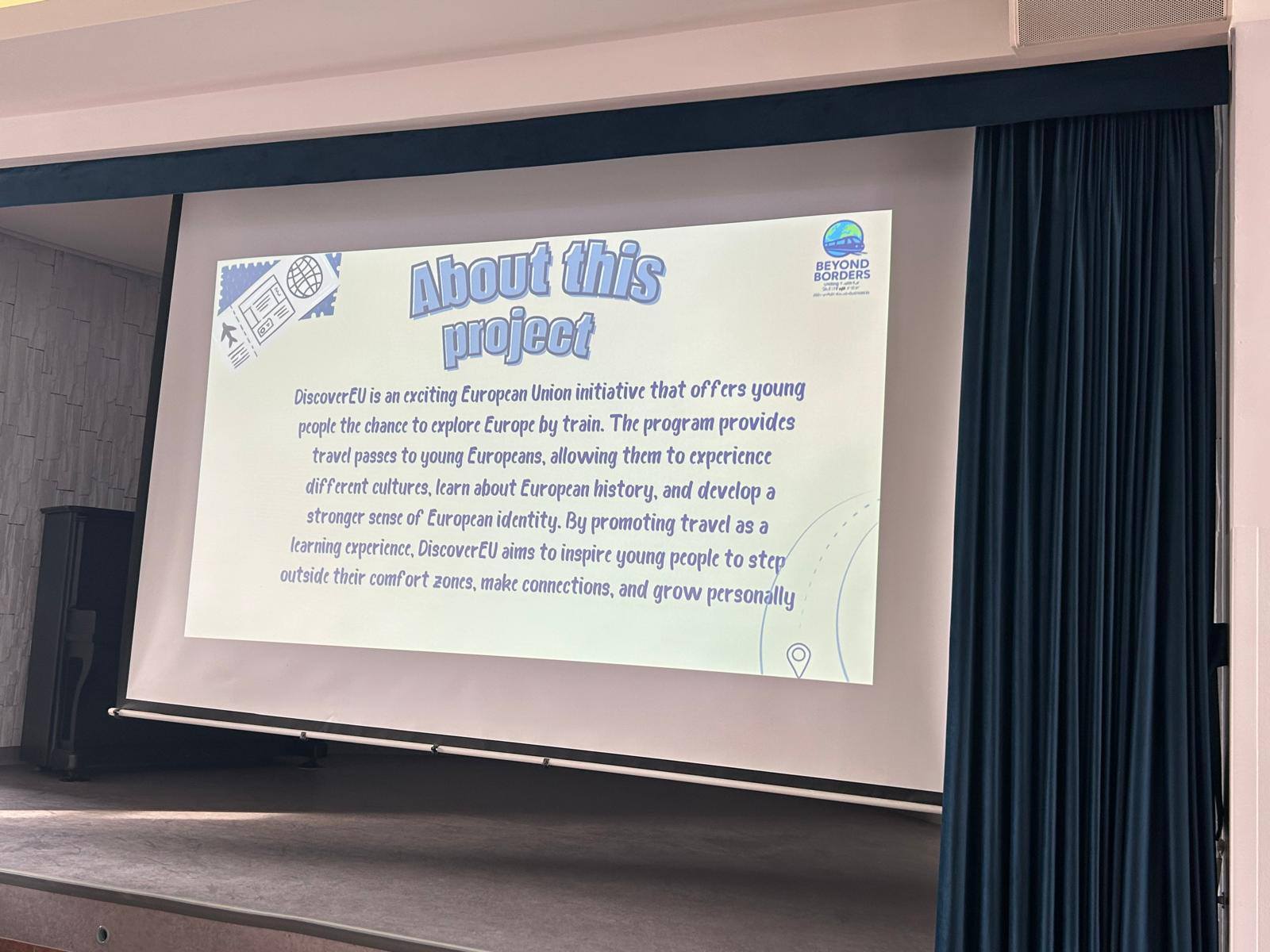 W szkole odbyło się spotkanie dotyczące programu DiscoverEU. W spotkaniu brały udział trzecie klasy.