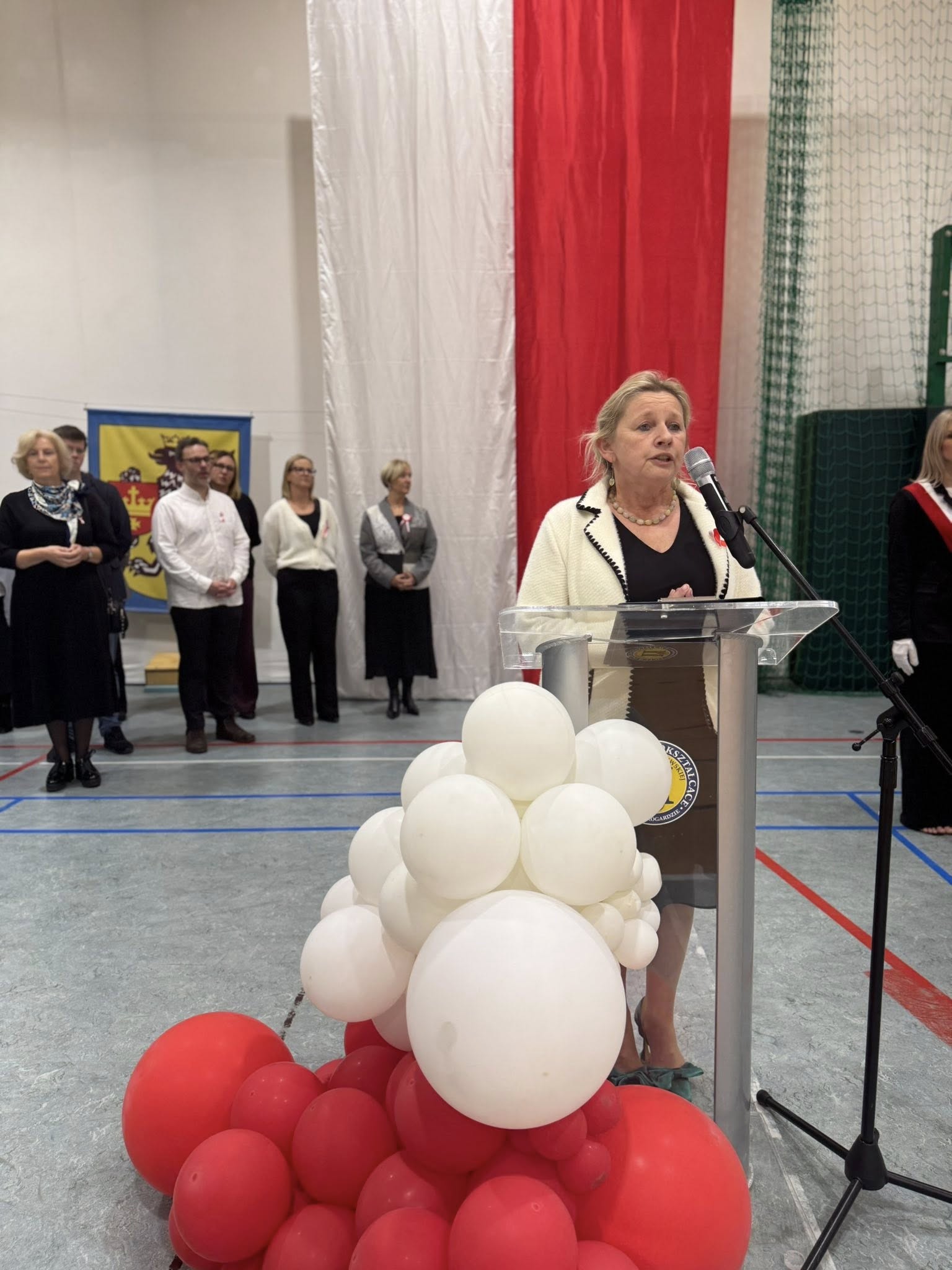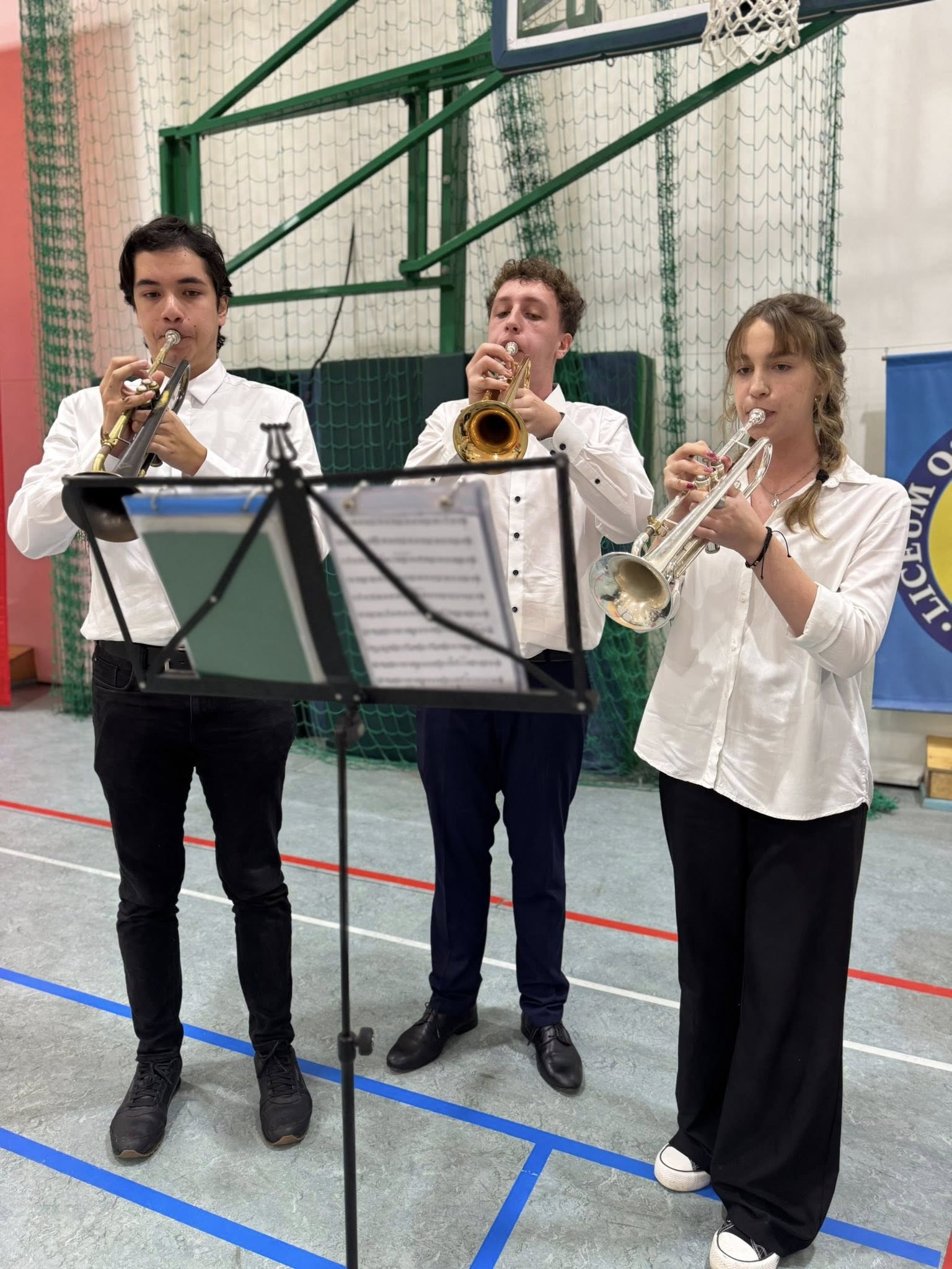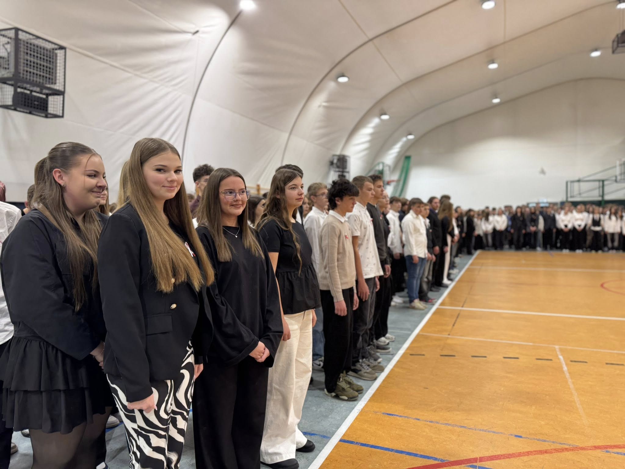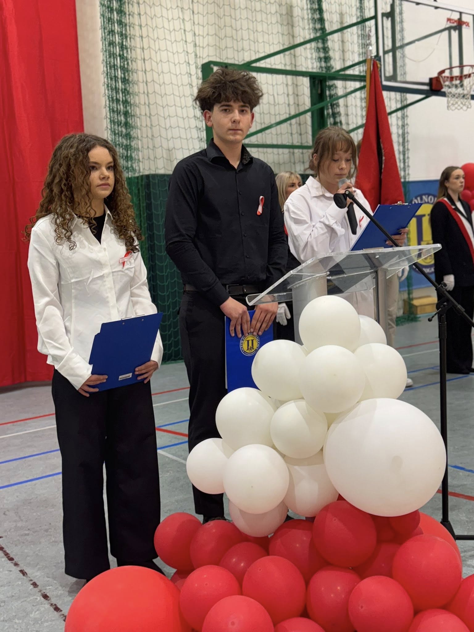 Kulminacyjnym punktem dnia było wspólne odśpiewanie hymnu przez wszystkich członków społeczności szkolnej. Nawet muzyka ze szkolnego radiowęzła była dostosowana do okoliczności.