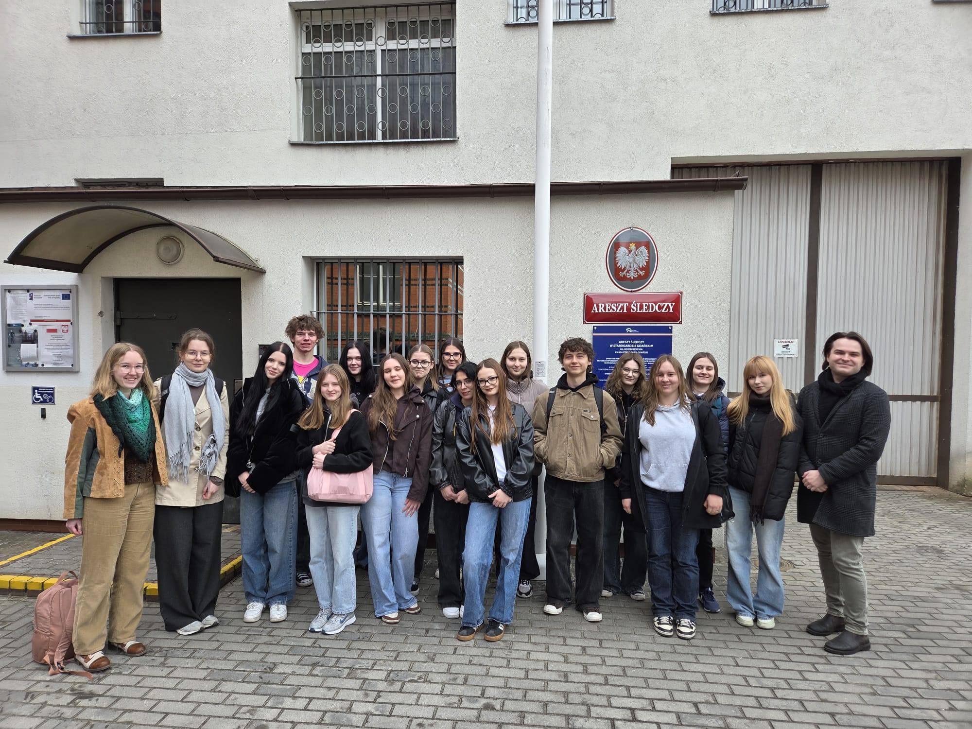 Dnia 8 kwietnia uczniowie klasy 4A mieli okazję uczestniczyć w wyjątkowej wizycie edukacyjnej w Areszcie Śledczym w Starogardzie Gdańskim. Spotkanie miało charakter prewencyjny i profilaktyczny – jego celem było zwiększenie świadomości młodzieży na temat konsekwencji łamania prawa oraz funkcjonowania systemu penitencjarnego w Polsce.
